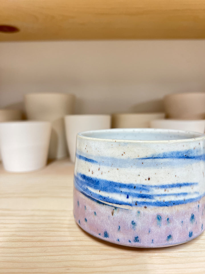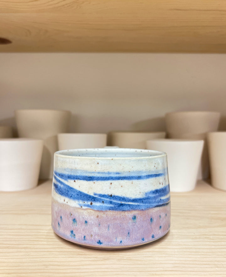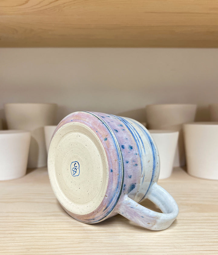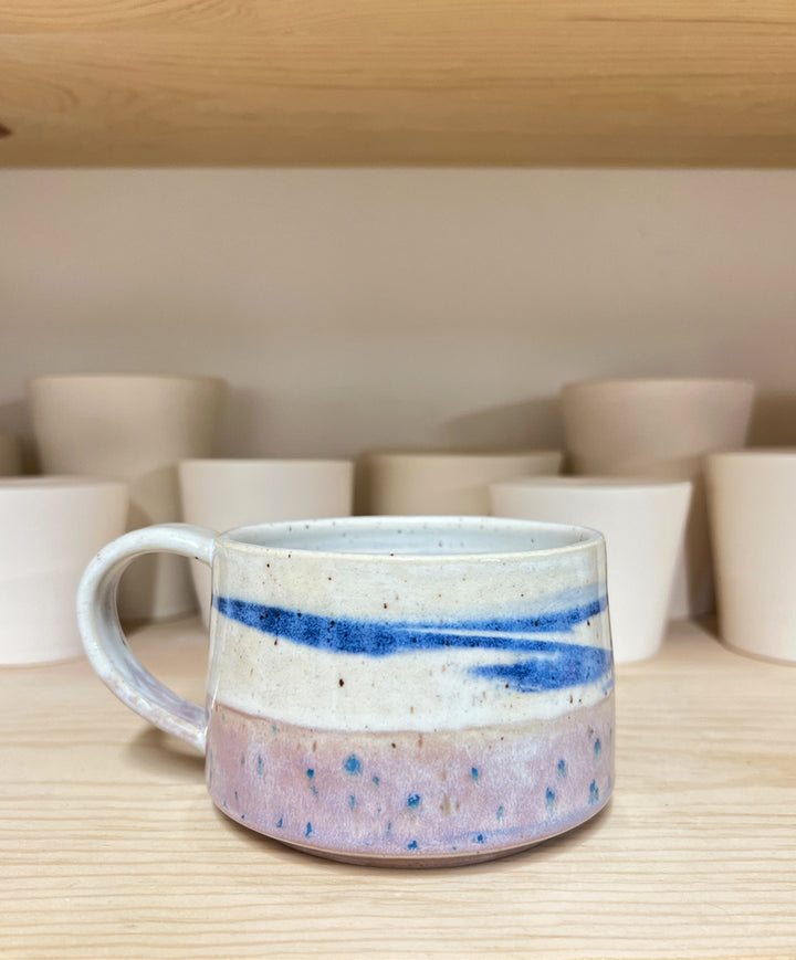 This stoneware mug is hand-thrown on the wheel and hand-decorated using food-safe glazes. Measures approximately 3 7/8" wide x 2 5/8" tall and holds approximately 11 oz.