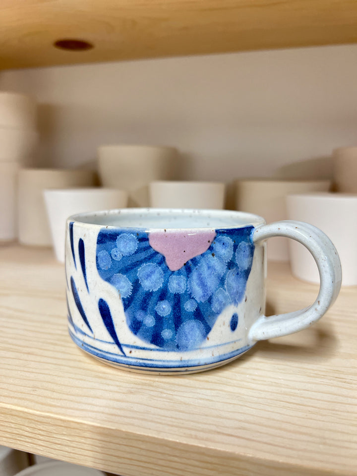 Mug 36 - New Blue Swirl w/ Crystal Florets